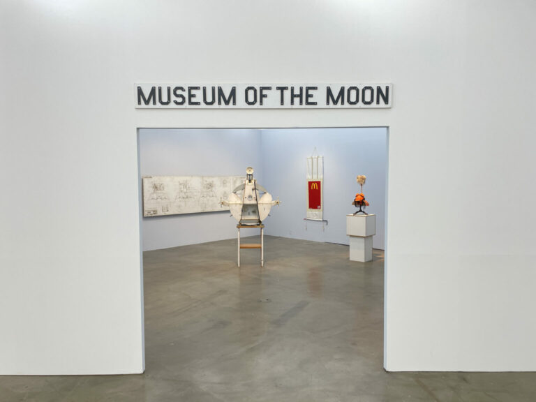 Space 1 include a bricolage version of the Apollo Program’s Saturn V Moon Rocket, and an array of Special Effects sculptures activated during each mission, each now displayed as totemic tributes to Sachs’ historical journeys to other worlds.