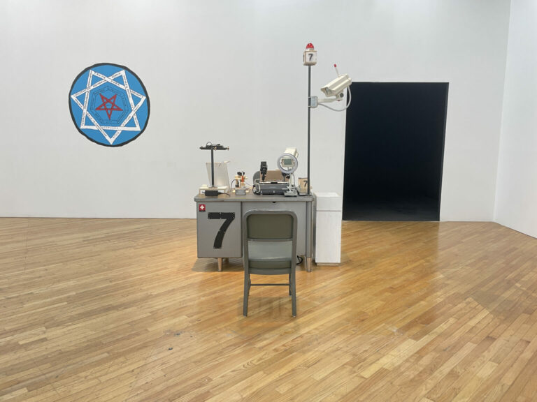 Space Program: Indoctrination is not a survey. It is an Indoctrination Center that presents the values of Sachs’ studio. The dictionary definition of “indoctrination,” refers to a form of teaching through force-feeding or brainwashing, or to the condition of believing unreasonable or mistaken things and forcing them on others. Therefore, this term is an allegory that explains the concept of the exhibition and a key to understand the world that Sachs creates. The curtain has been pulled back to show visitors not only how each work is made, but the philosophy behind the making.