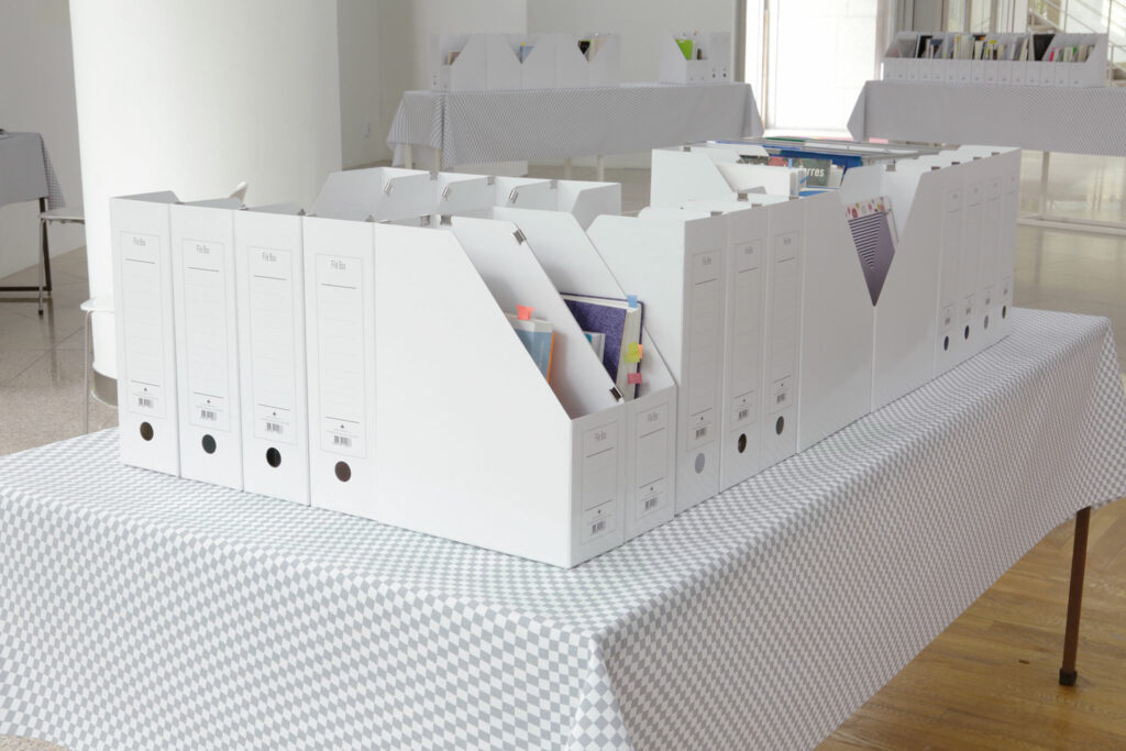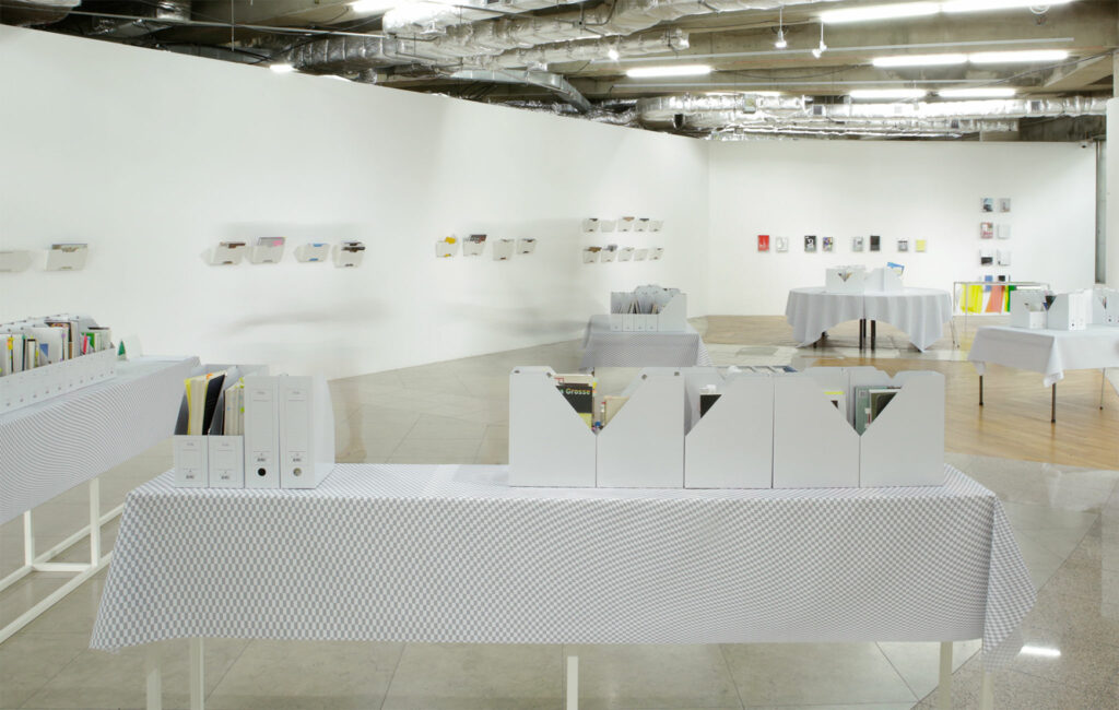 Art Sonje Center presents RSVP, by Daum Kim, as its fourth Lounge Project. RSVP proposes the lounge space as an interface through which to share the artist’s ideas on the role, conditions, and value of hospitality in today’s society. Kim uses books from the library of SAMUSO, an accumulation of cache files or traces of various exhibitions and exchange SAMUSO has had throughout its years. The artist categorizes the materials both linearly and non-linearly to install them as a reading room, while hiding his works of cards and video in between the pages of books and resources. Through this project, the artist seeks to discuss how hospitality operates and is valid in today’s society.