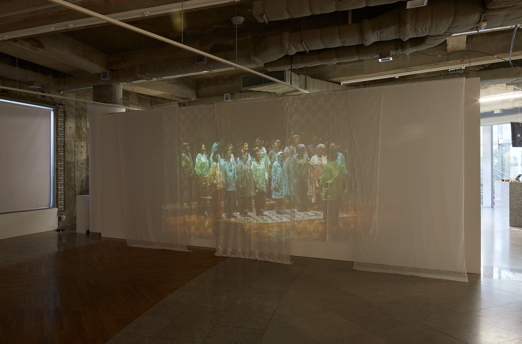 One example of seeing politics as context is a project by a group of women who spent years in prison after the political turmoil of 1965 because they were suspected to be connected to the communist party. During their time in prison, they wrote songs to overcome trauma and to heal wounds. In 2015, they created a choir with other family members of the survivors, named Dialita, and started to sing their songs and even released an album. They perform not only to speak up through their songs but also can be seen as a memoir to the women’s movements and activism that had been shut down during the New Order. Political chaos in Indonesia during 1965 and the years after became the context of this musical project. For this exhibition Kartika Jahja creates an installation that captures their concert performances and documents their interviews and everyday life.