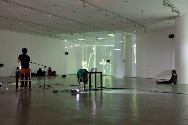 In order to construct this territory to walk, Kim collaborates with different participants and artists throughout different stages. Firstly, the artist has collected stories of journeys by interviewing various people. Then nine writers adapted the original stories to scripts that include their reflections; then, the scripts were created into sound pieces by eight participating musicians including Byunjun Gwon and Samon Takahashi; these different sound pieces were edited into one sound piece by music director Younggyu Jang. In the gallery space, the finished sound piece is played, creating an abstract territory where the detritus of the collected spaces and time and the interpretations of various artists are scattered throughout; and suggests ways to experience art in an emancipated way, walking in the artist’s abstract territory. Besides Abstract Walking, the artist also presents a new video work, Abstract Walking – A Spiral Movement Gradually Distancing from a Single Point.