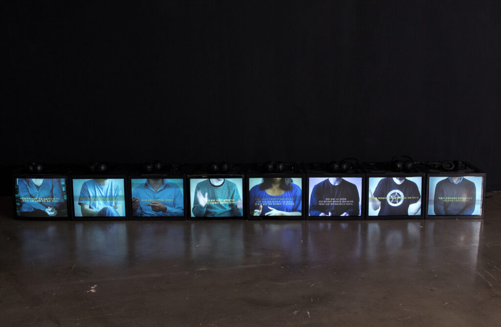 This exhibition was first conceptualized during a casual conversation between two friends, artist Kyung Roh Bannwart and curator Je Yun Moon. For a long time, Roh Bannwart has questioned the one-way communication between artists and viewers: the unilateral relationship where artists transfer meanings, which the viewers should interpret. This question led Roh Bannwart to focus on the function and system of exhibition as a ‘representational apparatus.’ She observed that the apparatus itself pre-determines and controls the way viewers experience art.