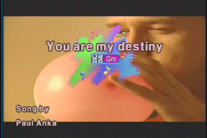 Four scenarios out of ten chosen scripts were written by others based on the two pieces of information given: one that the basic premise of ‘the encounter between a man and a woman’ has to be included, and that the artist would pose as the main character. Kim Yeon Joo, the winner of 1999 Miss Korea beauty pageant and Kim Jin, CF model, were selected by the artist to appear on the video. This video was showcased on the monitor of a real karaoke accompaniment console in a real noraebang setting installed in the art museum throughout the duration of the exhibition, and the visitor could sing and view the clip as they would in a real life situation.