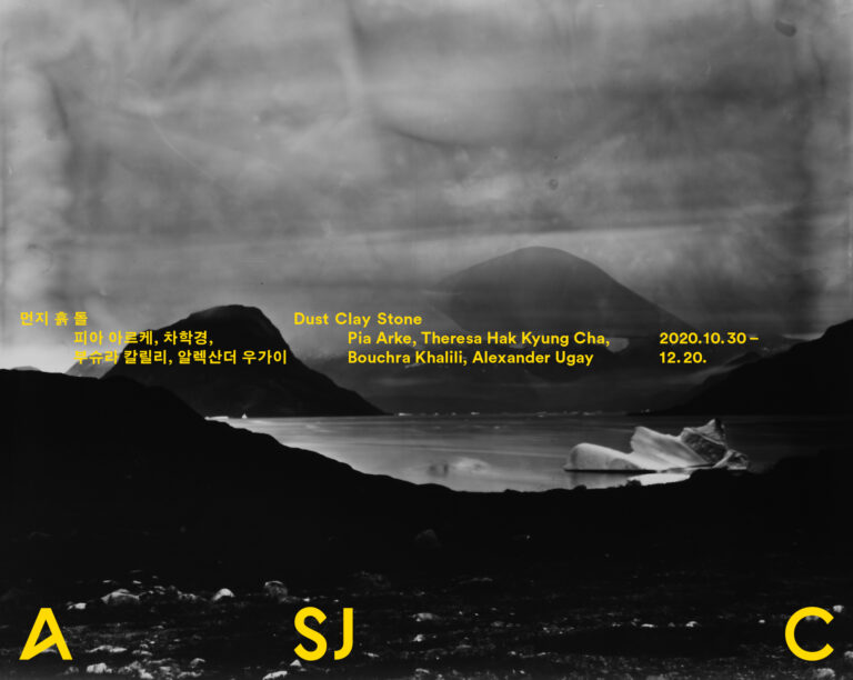 Dust Clay Stone focuses on works that represent the complex issues of identity faced by individuals experiencing situations of migration, as well as the perceptions that are formed or lost in the course of such experiences. The four artists, Pia Arke, Theresa Hak Kyung Cha, Bouchra Khalili and Alexander Ugay, whose works appear in the exhibition either experienced migration due to personal reasons or historical circumstance or are still living in a situation of it. While each of them has diverse cultural background through the experience of having been born in different regions of the globe and migrated to different continents or countries, the artists reveal their interests in the complex identity, the individual and collective memories, post-colonialism and allyship in their works. The works are also inter-connected in their methods of creating works such as their deep exploration of the structure of languages, the representation of images, approaches to the archival references, etc.