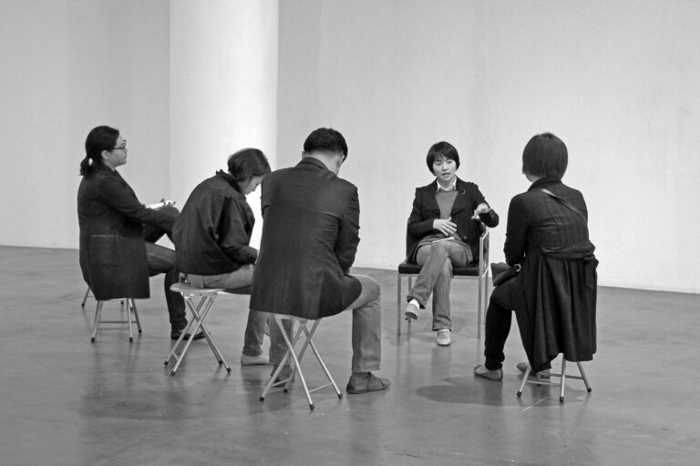 People Objective–Of Ordinary Art (2011) is a work where text written by the artist is delivered to the audience through language spoken by performers. In this work, Gimhongsok selects five words – chair, stone, water, people and concept – and tries to transform these words into art. The process of transforming words into art in this work started from the writing carried out to produce five essays: “Chair – A Short Study on Tools”, “Stone – A Short Study on Pure Material”, “Water – A Short Study on Materials That Cannot Be Configurated”, “People – A Short Study on Ethical Attitude” and “Concept – A Short Study on Expression”. Each performer is sent these five writings. The artist then talks with the performers about the writings. During the exhibition, the performers explain each text to the audience, not as a perfect reproduction but as a flexible explanation built upon each performer’s understanding of the texts. Gimhongsok explains that the conversation between the audience and the performers is the most important stage in his work for this exhibition. The works he presents are completed at the point of conversation. After that point, they are transformed into new works and narratives that no longer allow the artist’s intervention.