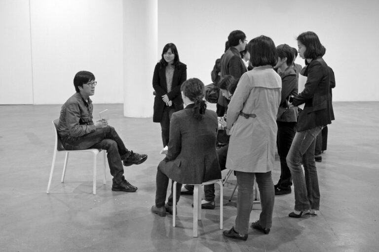 Gimhongsok’s performance works have always involved the theme of ‘difference and ethics’. In People Objective, he highlights the role of performers at its limit and the ethical politics of an artist. In this set of participatory performances, Gimhongsok intentionally reduces the authority of the artist to suggest that it is possible to complete the understanding and interpretation of the piece through the performers’ conversations with the audience. The language heard in the exhibition venue plays only a small role in this process; the meeting between the performers and audience becomes the main element.