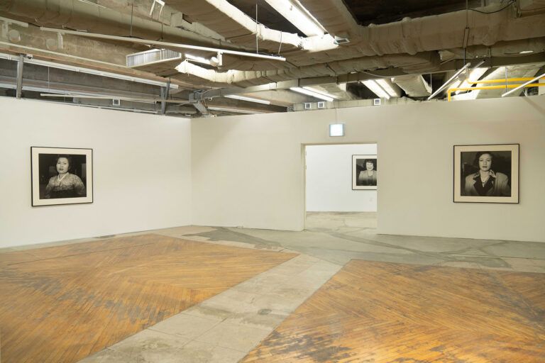 When it was originally held in 1999, Ajumma examined the position and meaning held by middle-aged women in Korean society. Adopting the two axes of “documentary” and “fiction,” Heinkuhn Oh showed the faces of women at the time who were ever-present in daily life as wives and mothers but absent at a social level. His intense lighting contrasts with the dark backdrops to accentuate the women’s thick makeup, clothing, and accessories, bringing to the fore the feelings of loneliness and isolation that they experienced in what was then a “country for middle-aged men.” Some criticized the work as overtly objectifying and disparaging femininity, but the exhibition was also ironically an occasion for underscoring the significance in the social identity of middle-aged women who were seeking out their own voices.
