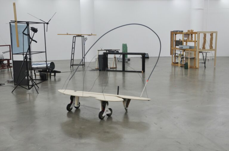 More recently, Rhii and Jung altered the format of their performance from a parade to one in which the movements of objects are laid within a concrete timeline for a specific function. They also invited fellow artists and makers to place or hang their poems, paintings, and sculptures on the apparatuses and activate them creating a series of narratives.