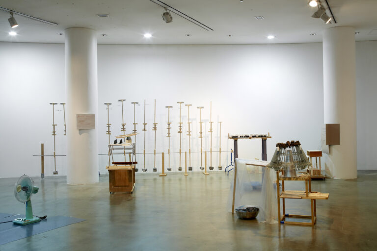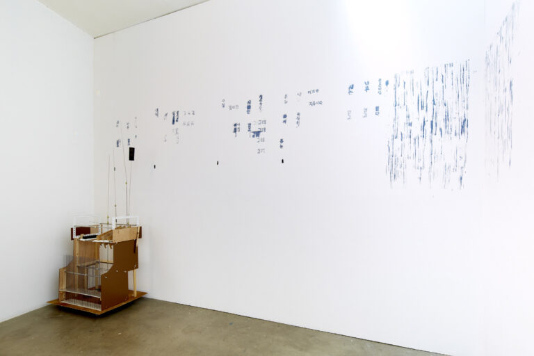 The artist examined the practical decisions as well as the aesthetic and semantic choices that arose by necessity due to her working in her living space, and utilized the conceived or transformed objects, drawings, and installations emerging from those acts both to understand her own environment and to generate a record of the stories that transpired. Thereafter, under the title Night Studio, Rhii opened her live-work space to the public on four occasions, with each open house limited to a certain number of visitors. Many objects and things appeared while they did not have names. The forms and purposes were free to be precarious in their process of transformation in the house. Later, Rhii gave a title to each open house depending on their respective situations and circumstances; these were New Comer, Far Sight, Wall to Talk to, and I Can Tell the Time.