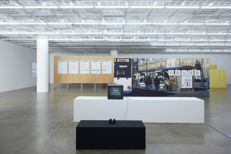 The exhibition is not a retrospective – but the works shown at the exhibition and produced for it describe a shift in perspective, both looking back at a series of his older works and within the narration of the exhibition. There is a shift away from a personal level (from salariiman to superman, Jun Yang and Soldier Woods) to a social and political standpoint (Camouflage – Look like them, Talk like them; Becoming European or How I grew up with Wiener Schnitzel) and a historical perspective (The Age of Guilt and Forgiveness and The Buck Stops Here). Then there is the view from a distance, from outer space (Across Stars and Seas, The Overview Perspective). It also tells the story of ‘moving away’ from a scenario where the artist appears in his own performances and speaks about his own history in order to address social issues – finally, he disappears both as the ‘creator’ of the work and the sole subject/object.