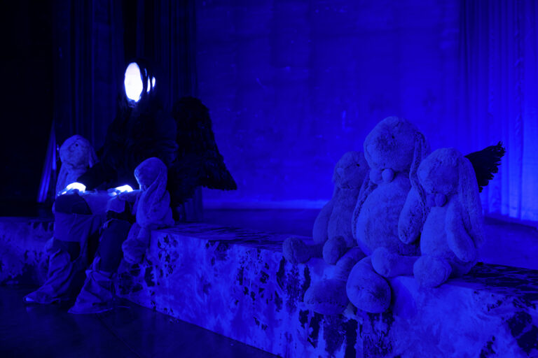 Arunanondchai uses rich visual references alluding to animist ritual and contemporary modes of representation to present a story in which personal narratives are entangled with historical incidents to form a view on how personhood enters collective beliefs. In Songs for dying, the artist’s personal experience with the loss of his grandfather is juxtaposed with historical episodes such as the uprising and massacres of Jeju April 3 and the on-going anti-government protest in Thailand. Examining how these personal narratives and historical events are linked through a belief system formed equally by spirituality and propaganda, the artist raises questions about being and meaning outside of a Western ontological framework. In the process, he attempts to reflect on the source of a greater power and vaster energy through which the stories of the individual self and the community become linked beyond the level of the nation, the state, history, or political order. In this way, he raises questions about the cosmic origins of life, addressing the existential constraints of life and our inability to avoid the cycle of life, growth, decomposition, and death.