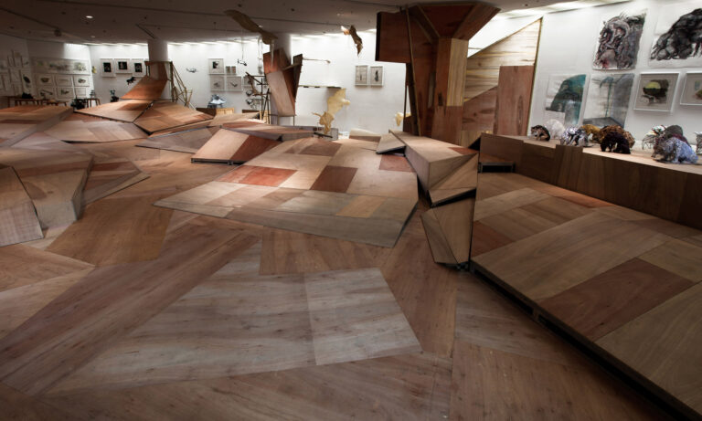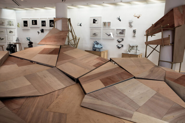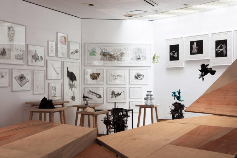 The evolution of Lee Bul’s artistic spectrum is presented in “The Studio” section of the exhibition, which features approximately 220 drawings, models, and preparatory studies for some of her best-known works-including sculptures from her Cyborgs andAnagrams series, Mon grand recit series, and the recent work The Secret Sharer. These accumulated traces of the artist’s intellectual and visual research over the past decades are presented in a space structurally transformed by Lee Bul so that it functions as an architectural sculpture in its own right.