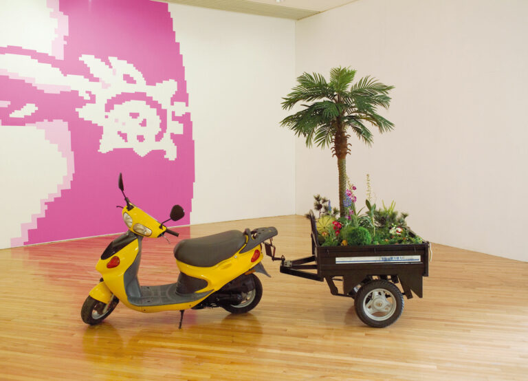 The exhibition “Mix Max,” which brings together thirteen art projects by European and Asian artists, presents a new vision and a different artistic form based on an attitude that, as it gains momentum, is turning out to be a generation of artists who mix and remix the cultural production. The exhibition is the outcome of its organizers’ desire to mix energies, abilities, and disparate materials. It is a way of resisting and reacting to the ascendancy of contemporary fundamentalisms from which art is not excluded. It is also a mixing of viewpoints that present and echo complicities among territories that, in general, are poor neighbors: art and fashion, art and music, and art and design ; genres and materials reputed to be obsolete: ceramics and drawing ; dangerous liaisons such as installation and cinema ; and relationships that are most often unconfessed between art and drugs, art, war, and games, art and sexuality, and art and syncretic identity. This exhibition also favors intersections and transversalities.