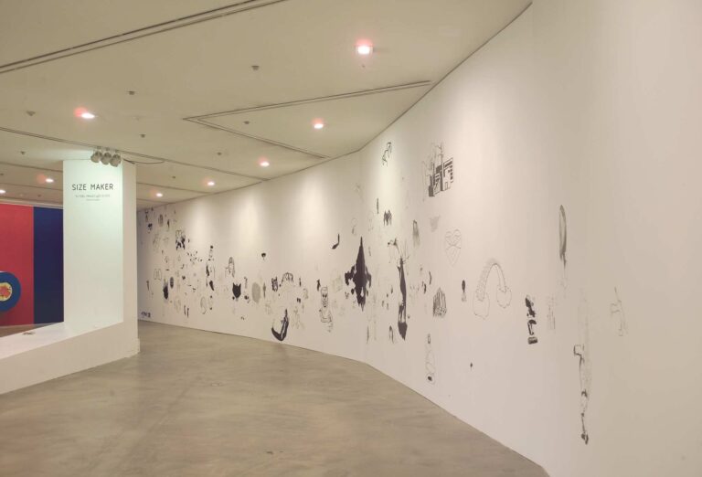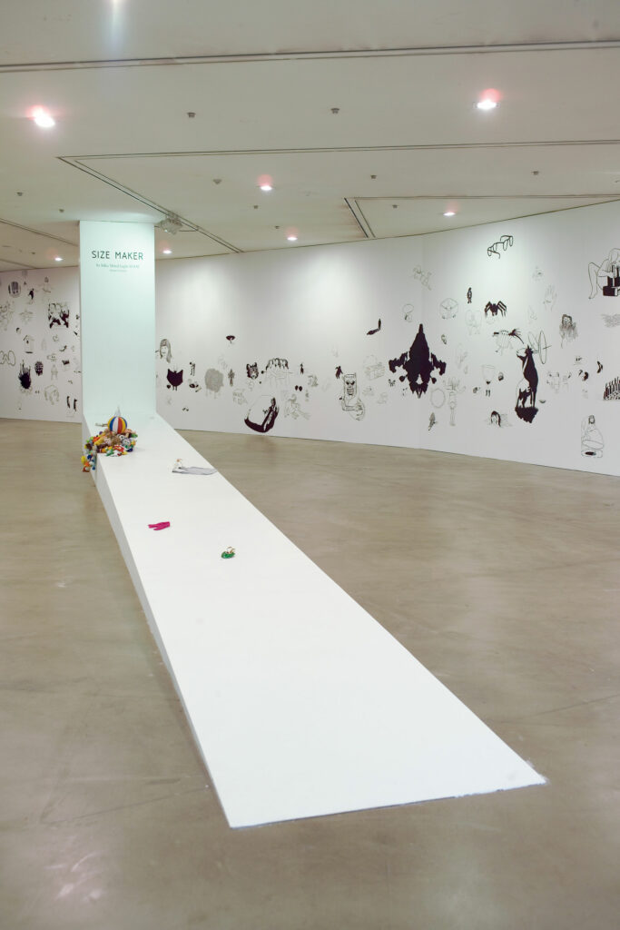 The concept of mixing, that produces another form from the meeting of heterogeneous elements in fluid and temporary state, throws a new light on the concept of “author” and “collaboration” in the creative work. Haegue Yang has illustrated this concept in her interesting piece presented in her past exhibition. In her intriguing scheme, the act of knitting undergoes several conceptual changes; first it is executed by anonymous viewer’s participation, then moved into a collaboration with professional fashion designer Sang-young, Seo, and finally presented as a product of a new brand, “Size Maker” that seems to defy the authentic authorship, but at the same time, launches a new “author/brand”. The brand Size Maker’s evolution implies temporary blank allowing fluid conceptual exchange and mixing, which will lead a way to a rich variety of art production through multidisciplinary and trans-genres exchanges. Jean-Francois Moriceau and Petra Mrzyk in their collaborative project, using images taken from movies, animations, logos, advertisements, and video games, recreate the scene of hybridity and chaos of contemporary culture in a bizarre and satirical fashion boosted by their plethora of imagination. Sometimes they make music videos with the group Air, and make a “story” out of drawings in an exhibition space.