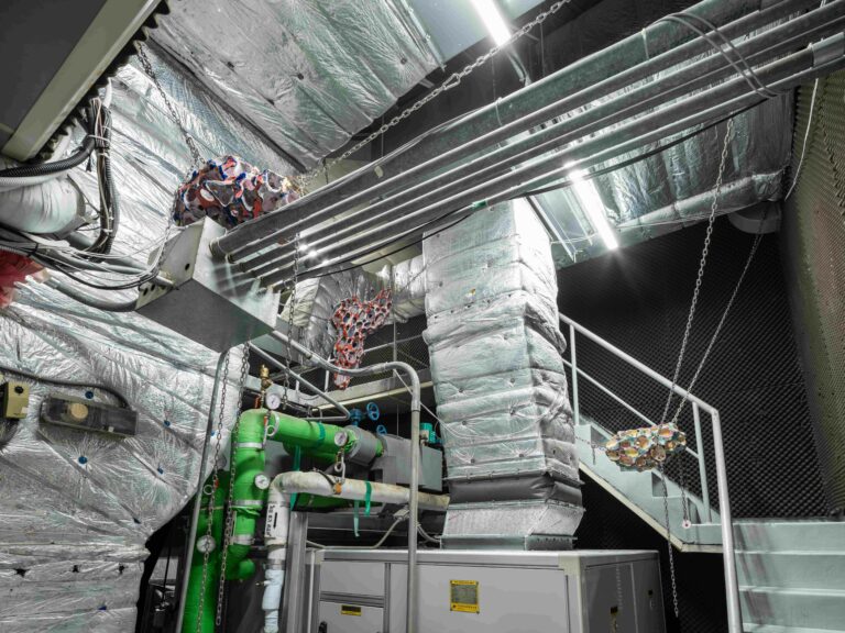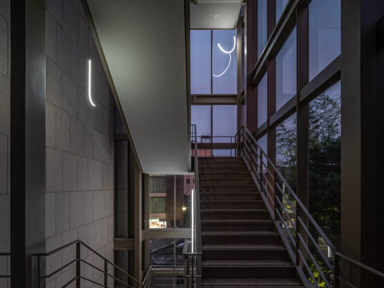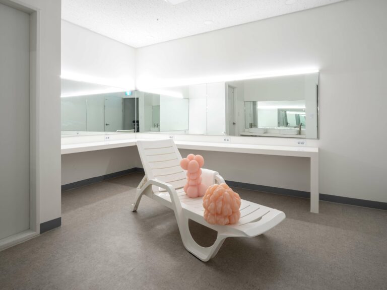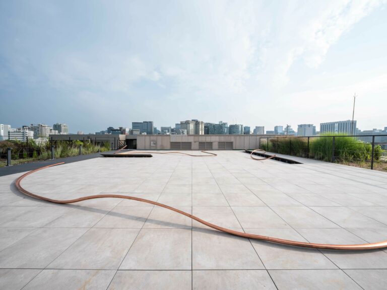 off-site invites visitors to explore contemporary artists’ fresh perspectives on the tangible and intangible aspects, as well as the phenomena and perceptions that shape our spatial experiences. Within Art Sonje Center’s structure, featuring towering galleries and multifaceted exhibition spaces, artists like Hyun Nahm ingeniously transform the machinery room, intertwining sculptures with pipes and ducts. Yona Lee’s installation mirrors the functionality of fountains in the museum’s Inner Garden. Jong Oh reimagines the staircase with hanging LED sculptures, while Choi Goeun converts concealed industrial pipes into Rooftop Garden sculptures. In the Art Hall’s backstage and dressing rooms, Jungyoon Hyen strategically places sculptures, evoking actors preparing for a theatrical performance, while GRAYCODE, jiiiiin captivates with media works on the opposite side of the Art Hall stage, exploring invisible phenomena beyond our universe’s boundaries. To enhance visitors’ experience, an archive space has been thoughtfully established in the basement floor 1 (B1) corridor, where individuals can access materials and interview videos featuring the artists.