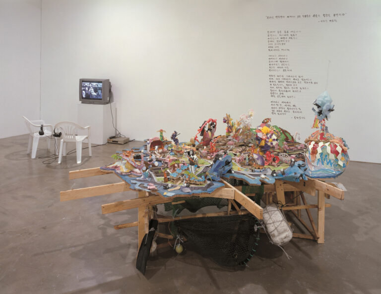 From times of old, the social purpose of art is an issue that is subject to dispute. This exhibition focuses on the sense of relationship that society and art have begun to knit, it is actually as though we are trying to travel through time by time machine and look at the periods of the past while mixing in the voices of artists who pre-view the future. Beginning with the Minjoong artists that arose under authoritarian rule in Korea in the 1980s, labour, modernization, urban over-population, social memory and experience became significant topics, after the 1990s and 2000s artworks sought harmony with space.