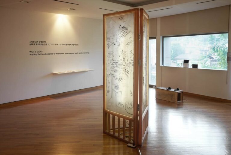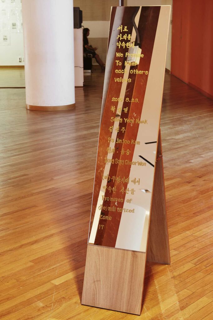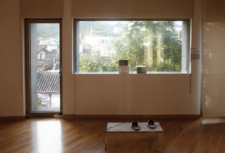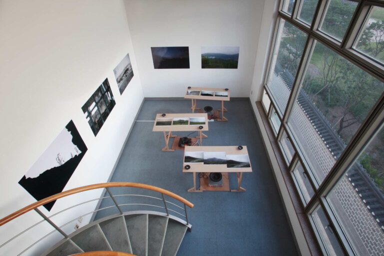 The exhibition at Art Sonje Center extends the exhibition to spaces inside and around the museum and introduces works of various forms including painting, photography, video, sound, site-specific installation, and performance. In the outside area in front of Hanok, an architect Dongsei Kim and an artist Soyoung Chung reconfigure and use different installation method for their pair of “terminals,” each of which was installed in Cheorwon Bus Terminal and Cheorwon Catholic Church. Inside Hanok, Kim Jipyeong presents new interpretations of the eight beautiful sceneries of Cheorwon as a video and as a series of paintings in the form of Korean traditional folding screens. In addition, on the first floor many video works address both virtual and real situations around the DMZ. Also, the “Dongsong Archive” room presents images of the bygone days of Cheorwon and the images of present-day Cheorwon.