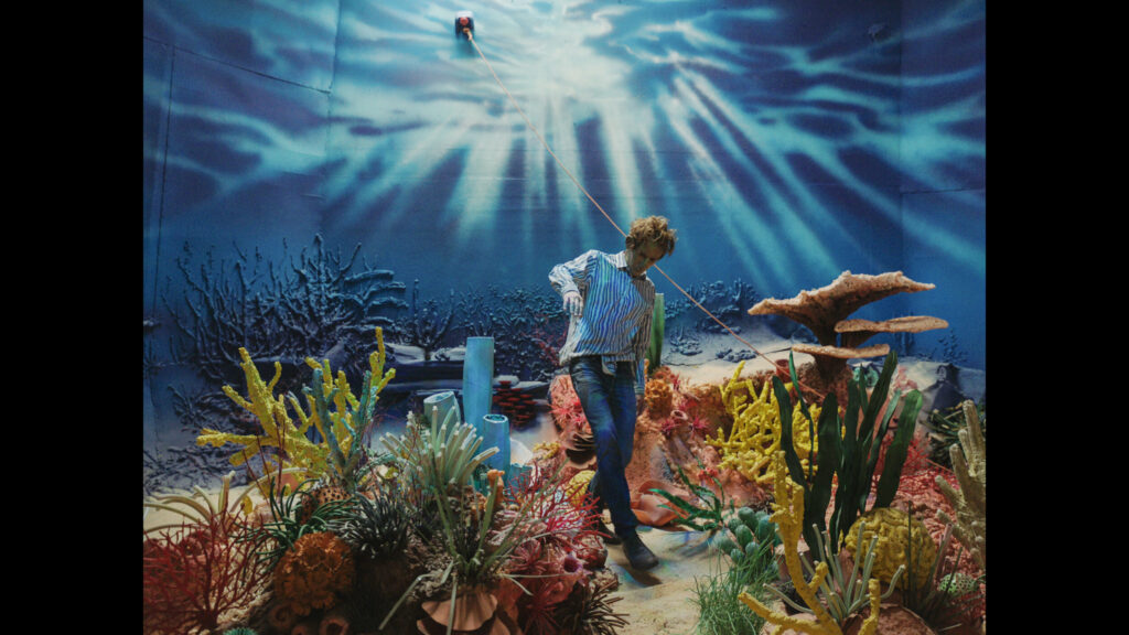 Featuring large-scale charcoal drawings, which many see as Van de Velde’s most emblematic works, as well as oil pastels, colored pencil drawings, videos, sculptures, and installations, the exhibition will be presented simultaneously at Art Sonje Center and Space ISU during the same period. At Art Sonje Center, the exhibition is organized around two films in which fragmented narratives unfold like a series of unconscious dreams. In La Ruta Natural (2019-2021), the death and rebirth of the self is repeated through a journey into a surreal world with a palindromic title, while A Life in a Day (2021-2023) depicts the journey of a pleinairist over the course of a day. In both films, the protagonist wears a mask that resembles the artist’s face and plays Van de Velde’s doppelganger, living different versions of “a life in a day” by repeating the virtual and real, adventure and routine, and life and death. The devices that appear in Van de Velde’s films are also things created by the artist himself with wood and cardboard in his studio. The exhibition allows viewers to actually see the sets and props that appear in his films, from real-size sets and cardboard cars to miniature models. Like handicraft items, they have been painstakingly produced down to the tiniest details, yet the vulnerable materials and construction are intentionally revealed in a way that reminds us we are looking at a cinematic illusion.