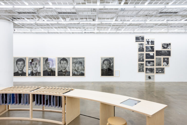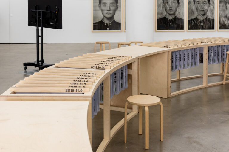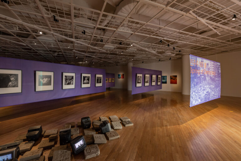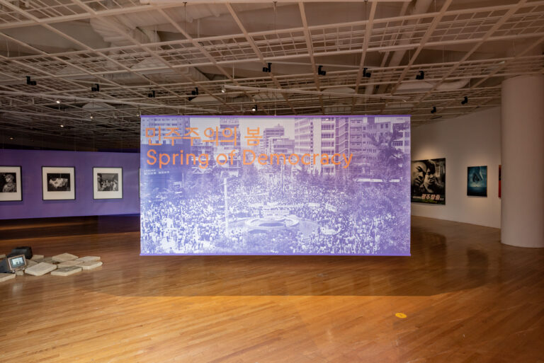 The exhibition is organized across two floors of Art Sonje Center in Seoul. On one floor, viewers are first invited to walk back in time, weaving their way between photographs taken by Korean journalists during the ten days of civic resistance against the military government and works of art generated over the span of four decades that represent various moments of this important democratization movement and its resonance in contemporary South Korean society. The other floor of Spring of Democracy juxtaposes different languages of archiving and dissemination, ranging from a selection of minjung woodcuts, titled A Testimony of Resistance, guest curated by art historian Jinha Kim to Suntag Noh’s Forgetting Machines (2006-2020) which reflects upon memorialization through funerary photography.