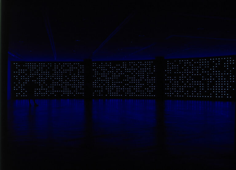 The impact of ‘Sea of Time’ on the international art world enabled Miyajima to build from its sculptural premises, giving much of his work from the early 1990s a feeling of consolidating that work’s breakthrough via a series of sculptural counting devices arranged in multitudes of architectural configurations. In a sense, an entire facet of Miyajima’s work continues to develop around the sculptural premises of the single LED counter, and it has been the source of some of his most significant public commissions, including the Tokyo Opera City(1996) and an Edo period house on the island of Naoshima(2000). In the former, he embedded a single small counter into the ground on both sides of every tenth or twelfth step of the main outdoor stairway, so discreetly that the counting is only discovered by a fraction of the people using the stairs. For the Naoshima Contemporary Art Museum commission, he converted the main family room of the house into a shallow sunken pool, at the bottom of which the counters blink in colors and speeds which have been chosen by the inhabitants of the tiny village.