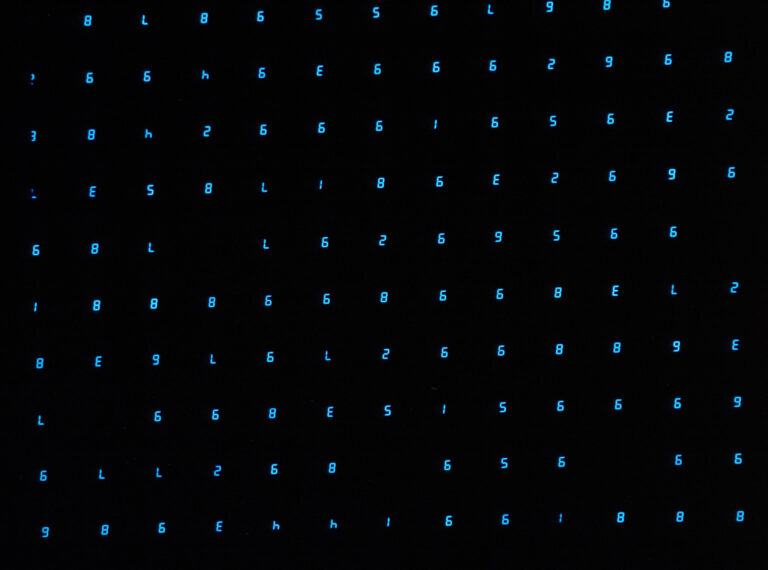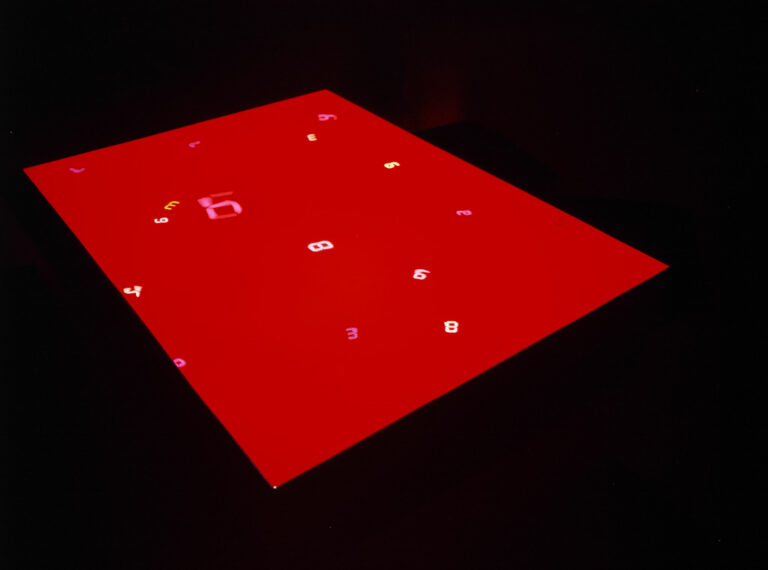 In the past few years, Miyajima has also been working to perfect ‘Floating Time’, an installation work that extends the premises of movement in the ‘U-cars’ to include the space in which the viewer is located. In ‘Floating Time’, a series of darkened staging areas on the floor are set up in conjunction with moving projectors on the ceiling. As the viewer enters these spaces, he or she becomes part of a projected environment in which dozens of individual numbers are not simply progressing forward, but also changing size, color and velocity of movement. Although viewers are encouraged to become a physical part of the space of projection, it is equally possible to stand alongside one of Floating Time’s platforms and gaze into the spectacle. In this freedom of movement, Miyajima has opened his work up to a new interrelationship with the viewer, in which total body immersion and a more traditional spectator’s passivity can be alternated at the whim of the visitor.