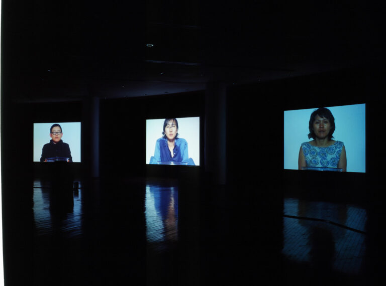 Whereas, generally speaking, most of Miyajima’s work requires technology to make its underlying philosophical points, he has been actively investigating ways of developing his work that embrace other media as well. Since 1996, he has produced a series of works under the title ‘Counter Falls’, which explores the ways that awareness of the passing of time depends on language and cultural orientation to produce a corresponding awareness of the constant proximity of death. ‘Counter Voice’ brings together several different individuals, sometimes speaking in different languages, each with his or her own separate video projection. Each participant is asked to recite a countdown, and upon reaching the end, to submerge his or her head into a bowl containing liquid (he has used water and milk as well as wine). In this way, Miyajima dramatizes the fact that each individual possesses an inner clock set to the time that each of us will die. Because none of us knows precisely when that will occur, our lives are predicated to some degree on acknowledging this reality, while also making sure that we can keep functioning within a social context. Bringing together this reality, as well as the compulsion to keep our knowledge of it at a distance, Miyajima explores the fundamental role that the unspoken awareness of impending death plays in different cultural situations.