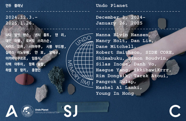 Undo Planet includes essays by two curators Sunjung Kim and Jina Kim, sharing exhibition making process, along with introductions to the artists and their works. Additionally, it features Robert Simthson’s essay A Sedimentation of the Mind: Earth Projects, originally published in Artforum in 1968.