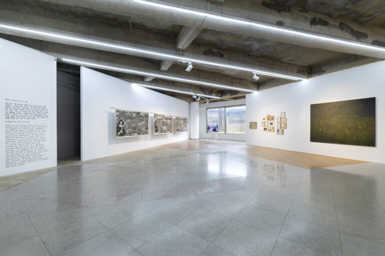 The exhibition features works of artists who collaborated and engaged with the “community”. Tarek Atoui features a video of the workshop that the artist conducted with the children of Cheorwon, where they explored new ways to perceive sound. Dan Lie showcases a drawing that reflects site-responsive reactions to diverse cultural engagements, while Pangrok Sulap contributes prints capturing their collaborative experience with the riverbank communities in Chiang Khong, Thailand.