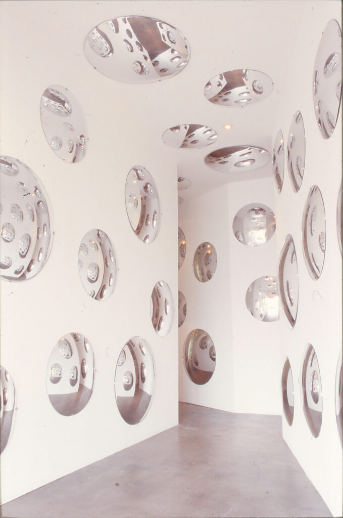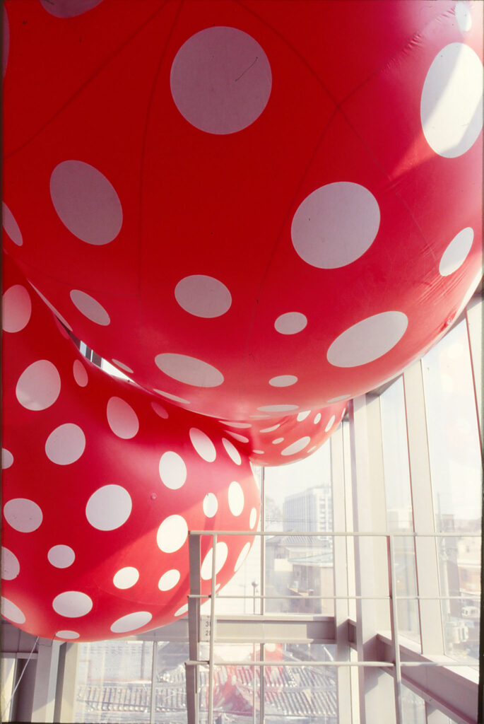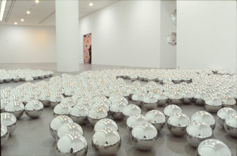 Kusama’s wonderland, an invitation to a world of dream and fantasy The exhibition at Art Sonje will be composed of ten installation works, including the artist’s labyrinthine “Infinity Mirror Room,” composed of hundreds of mirrors and reflected light bulbs that invite us into an infinite space, “Fireflies on the Water,” “Dots Obsession, New Century,” a room filled with big, multicolored balloons and polka-dot stickers, and “Narcissus Garden,” where fifteen hundred silver-colored balloons will cover the museum garden. These works will begin in the entry of the art center and the garden, and continue into the exhibition spaces, creating a fantastic and dreamlike environment much like Kusama’s “Wonderland.” The artist transforms her schizophrenic symptoms, which form the basis of her work, into a joie de vivre through art that extends into an infinite and fantastic dream world, all the more affecting because the artist is now seventy-three years old. Kusama especially created these works in her studio for the European traveling show. Art Sonje will present them for the first time in Asia. After its triumphant two-year European tour, Art Sonje is proud to present Yayoi Kusama’s exhibition beginning in February 2003, first in Seoul, then at the Sonje Museum in Gyeongju, in June. The exhibition promises to be like a joyous festival, not only for the art world, but for the general public.