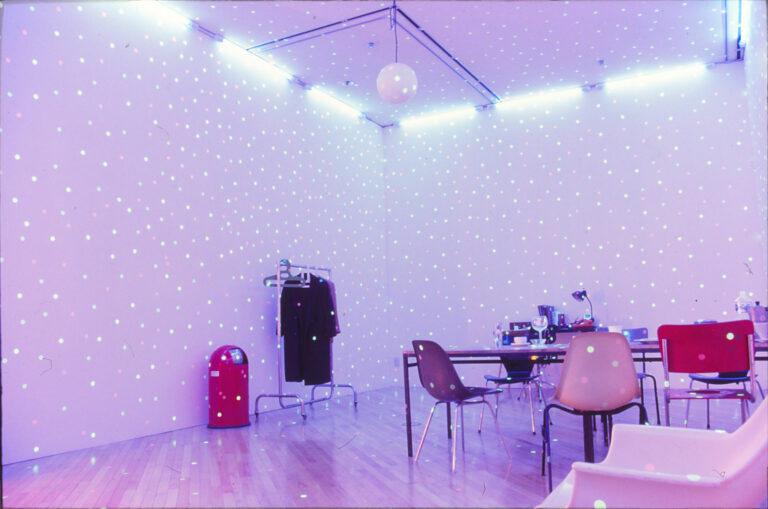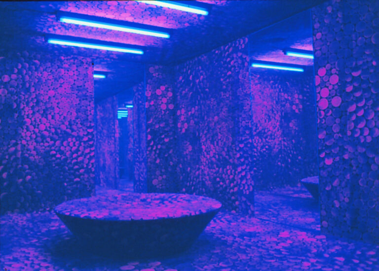 Born in Nagano, Japan, in 1929, Kusama began her career in New York, in 1958. Since the nineteen-sixties, her presence on the New York art scene alongside the likes of Nam June Paik has had an important influence on the history of contemporary art. She has said that in her work she tries to free herself from social conventions. Indeed, she was first noticed for her anti-Vietnam War happening “Love Forever,” (1958-68). Another important moment in her artistic development came when she collaborated with the minimalist artist Donald Judd. From this moment on, she became an important avant-garde artist, doing pop and minimalist art, and happenings with AndyWarhol, Frank Stella, and Allan Kaprow. During this same period, she began to create works with polka dots, commenting that “my life is a dot that has lost its way in the midst of hundreds of thousands of other dots.” At the same time, she created happenings that expressed social and political issues. In 1973 her obsession problem, which she had had since childhood, worsened, so she returned to Tokyo to be treated in a psychiatric hospital. Since then, in Kusama’s art world there are “obsession problem” — infinitely multiplied polka dots or intertwined networks of lines. In their repetition and multiplication, these visual motifs strip away composition, have neither beginning nor end, and extend into infinite space. One of her work’s original qualities is to sublimate symptoms of illness into pleasure and joy, and to present us with a Kusama World that is unique and gay.